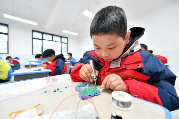 2023年12月14日,在湖北省襄陽市??悼h后坪鎮(zhèn)中心學校,學生們參加電子制作競賽。通訊員 楊韜 黃玲 攝