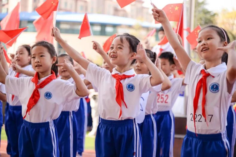 2023年10月12日,在山東省青島市城陽區(qū)第二實驗小學,學生們在秋季運動會開幕式上進行才藝展演。通訊員 張鷹 攝