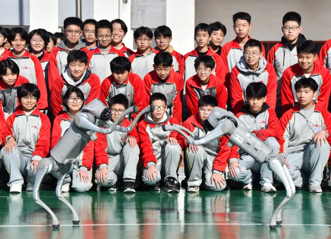 2024年12月6日,河北省邯鄲市永年區(qū)實驗中學,學生正在觀看機器狗表演。胡高雷 攝