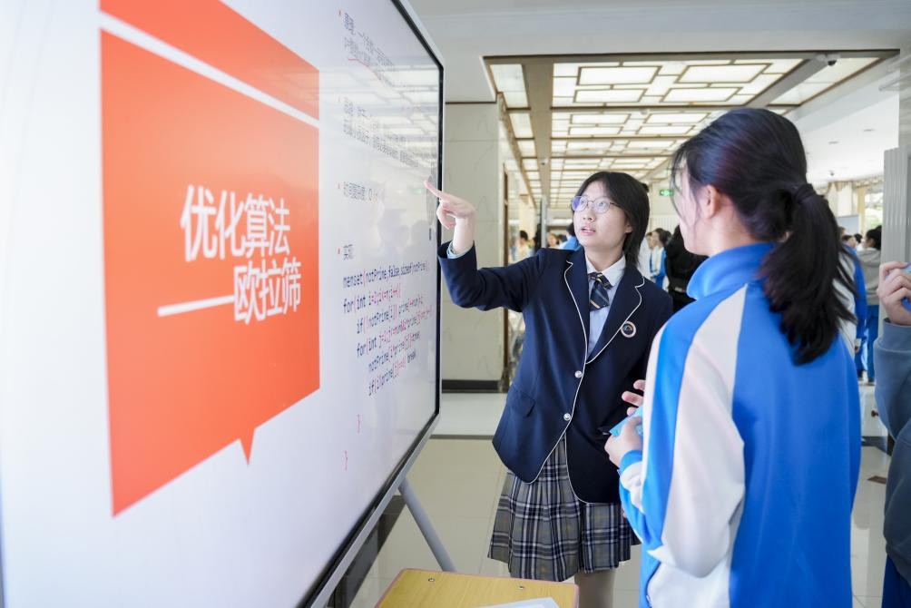 “數(shù)模筑夢”板塊中,學(xué)生們展示了在數(shù)學(xué)建模方面的成果,在日常的生活和學(xué)習(xí)中,大模型工具提升了學(xué)生用數(shù)學(xué)的眼光看世界的能力,學(xué)生也不斷通過建模豐富著大模型的功能。