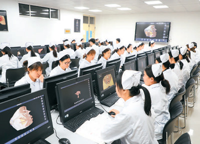 醫(yī)學技術與護理系學生運用人體解剖虛擬仿真資源進行自主學習。
