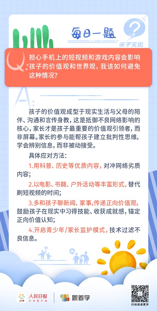 每日一題丨家長該如何避免手機上的內(nèi)容影響孩子的價值觀和世界觀?