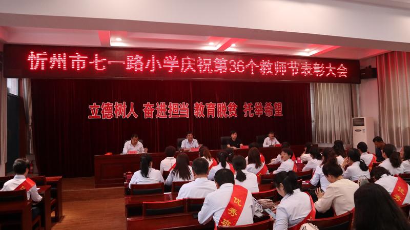 金風(fēng)送爽,涼霜驚秋。伴隨著時(shí)光款款的腳步,相攜著歲月累累的果實(shí),為傳承尊師重教的文明火種,增強(qiáng)教師的光榮感、責(zé)任感、使命感,培養(yǎng)學(xué)生尊師重教的良好品德,在第36個(gè)教師節(jié)即將來臨之際,9月9日下午,忻州市七一路小學(xué)舉行了“立德樹人奮進(jìn)擔(dān)當(dāng),教育脫貧托舉希望”第36個(gè)教師節(jié)表彰活動,會議由郭彥君副校長主持,全體教職工參加了表彰大會。