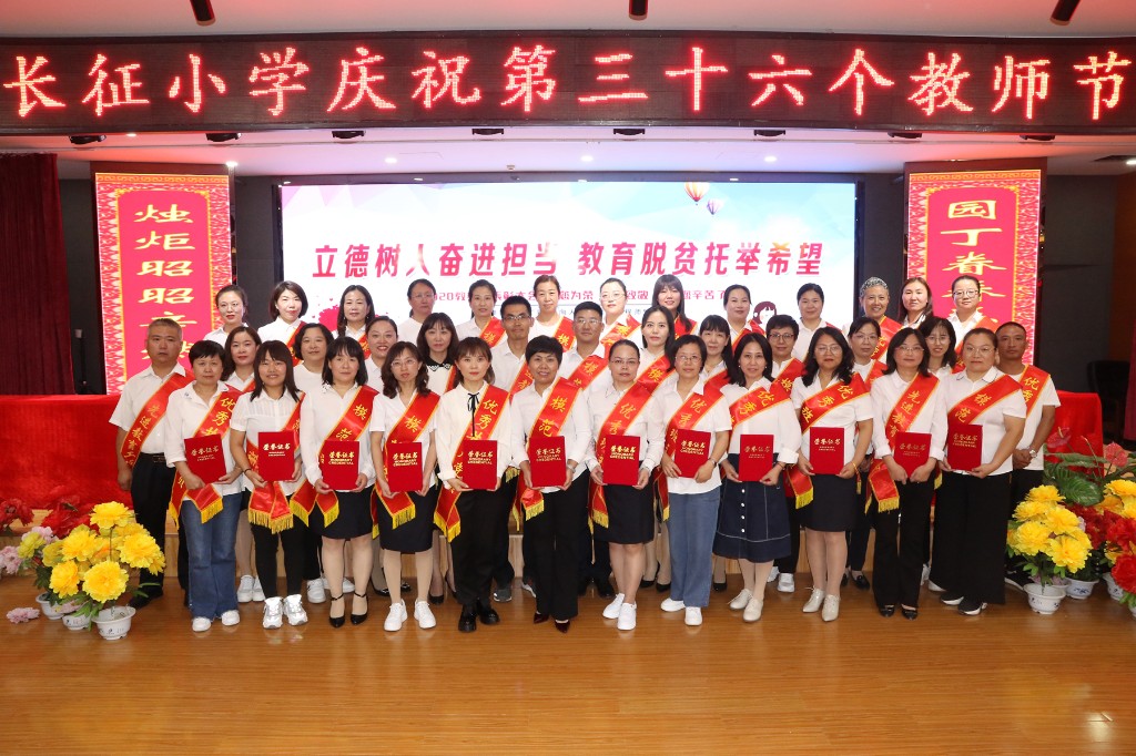 支部書記常文華主持大會并宣讀了長征小學模范教師名單,副校長周玉靜宣讀了長征小學優(yōu)秀班主任名單,副校長劉秀峰宣讀了長征小學先進教育工作者名單和優(yōu)秀共產(chǎn)黨員名單,同時舉行了隆重的頒獎儀式。