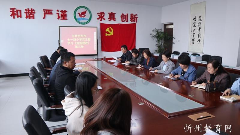 忻州市七一路小學(xué)網(wǎng)訊:10月19日,中共忻州市七一路小學(xué)黨支部專題學(xué)習(xí)《習(xí)近平談治國理政》第三卷。黨支部書記靳茂文作專題報告,全體黨員參加了會議,會議由黨辦主任史小榮主持。