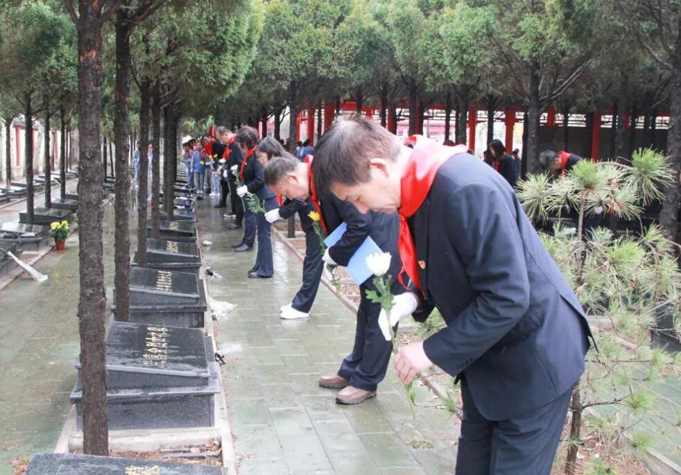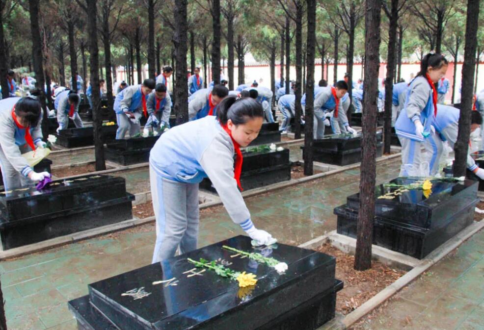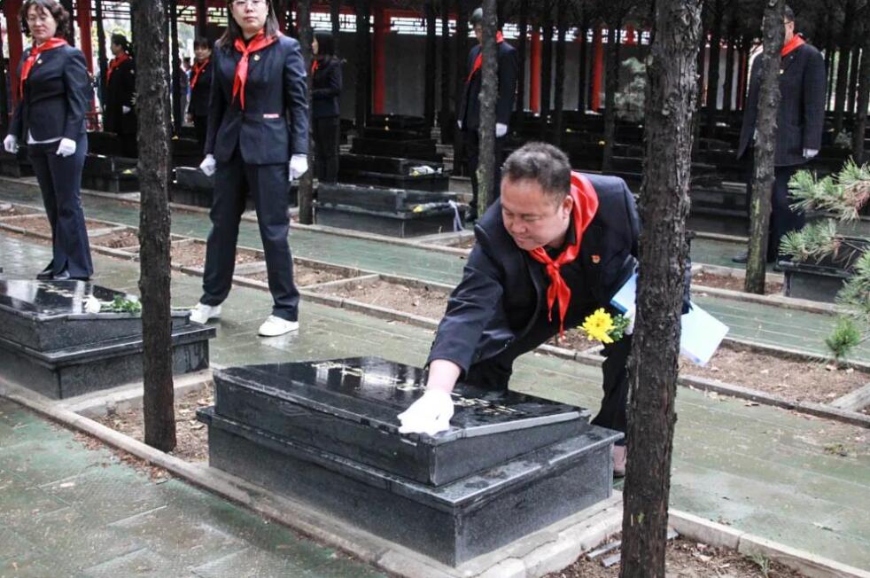 在祭奠活動(dòng)中,同學(xué)們跟隨盧俊芬老師一道學(xué)習(xí)了趙正午烈士的革命故事,為烈士陵園的先烈們敬獻(xiàn)花籃、默哀,并細(xì)致的擦拭了每座烈士墓碑,以此表達(dá)對(duì)先烈們的無限哀思。