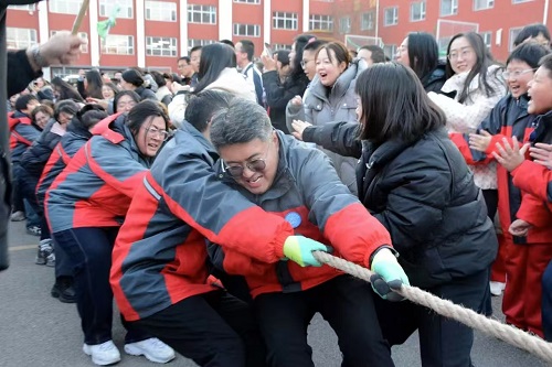 近日,忻州市北方初級中學(xué)舉行了冬季拔河比賽。比賽哨聲一響,賽場瞬間沸騰。參賽隊員們緊握長繩,雙腳蹬地,身體后傾,每一個動作都凝聚著集體的力量與智慧。老師們化身為全情投入的啦啦隊長,揮動雙臂,聲嘶力竭地為隊員們指揮節(jié)奏;各班同學(xué)則自發(fā)組成陣容強大后援團,將現(xiàn)場氛圍一次次推向高潮。(馮偉倫 攝)