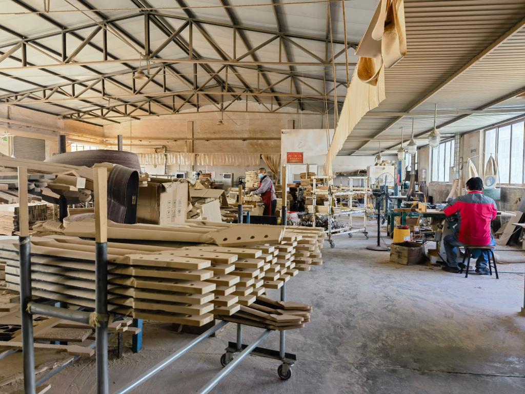 在濰坊大唐樂器發(fā)展有限公司,工人們正在加工木材。新華社記者 王志 攝