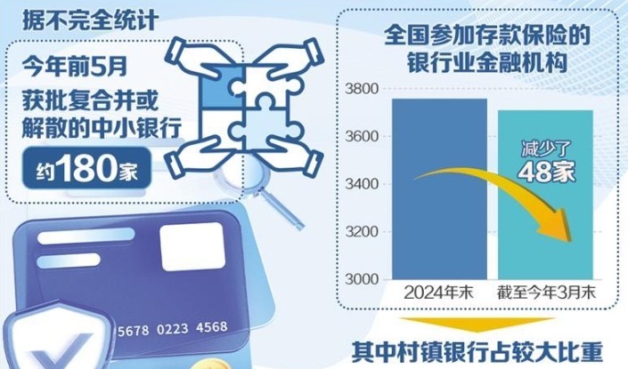 中小銀行是我國金融體系的重要組成部分,也是推動區(qū)域經(jīng)濟發(fā)展和服務實體經(jīng)濟的生力軍。今年以來,我國中小銀行改革重組步伐加快,多地的村鎮(zhèn)銀行、農商銀行等金融機構被吸收合并重組,將在金融機構名單上加速消失。據(jù)不完全統(tǒng)計,今年前5月,約180家中小銀行獲批復合并或解散。