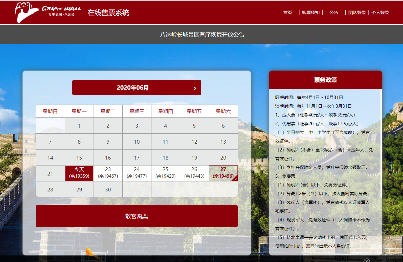 記者注意到,截至6月22日,北京最熱門的景區(qū)之一八達(dá)嶺長(zhǎng)城在端午期間每日仍有近2萬票。不過故宮博物院門票已售罄。