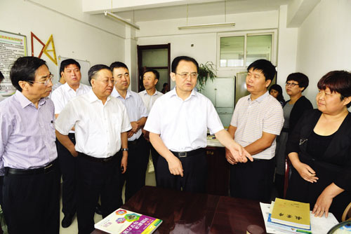 本報(bào)訊(記者任逢春)帶著溫馨祝福,送去濃濃關(guān)懷。在第32個(gè)教師節(jié)來臨之際,9月9日,市委書記李俊明帶領(lǐng)市直有關(guān)部門負(fù)責(zé)人深入城鄉(xiāng)學(xué)校,向奮戰(zhàn)在一線的教育工作者致以節(jié)日祝賀和問候,并就基礎(chǔ)教育工作進(jìn)行調(diào)研。李俊明強(qiáng)調(diào),教育事業(yè)關(guān)系千家萬戶,關(guān)系子孫后代,要堅(jiān)持改革、規(guī)范、發(fā)展,在促進(jìn)教育的均衡發(fā)展與人的全面發(fā)展上下功夫,在著力解決因教致貧、因教返貧,斬?cái)嘟逃毨ТH傳遞上下功夫,為我市全面脫貧、全面小康提供智力支持和人才保障。市委常委梁潔等一同調(diào)研慰問。