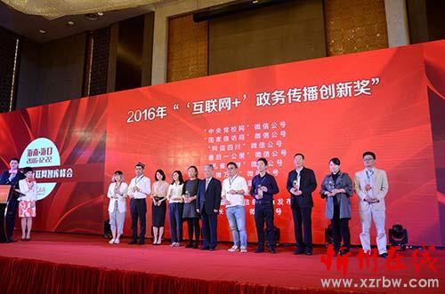 本報(bào)訊 12月22日,首屆全國(guó)互聯(lián)網(wǎng)智庫(kù)峰會(huì)暨第四屆網(wǎng)絡(luò)輿情論壇在海南省??谑新≈卣匍_(kāi)。中央及各?。ㄊ?、自治區(qū))宣傳和網(wǎng)信部門(mén)領(lǐng)導(dǎo)、國(guó)內(nèi)業(yè)界知名專家、學(xué)者、政務(wù)新媒體代表等200余人齊聚一堂,圍繞“‘十三五’供給側(cè)改革背景下輿論新格局”主題,深入探討互聯(lián)網(wǎng)內(nèi)容建設(shè)與供給、政務(wù)輿情回應(yīng)和引導(dǎo)的新理念、新思路、新格局。會(huì)議期間,舉行了2016年“互聯(lián)網(wǎng)+政務(wù)傳播創(chuàng)新獎(jiǎng)”、“政務(wù)輿情回應(yīng)優(yōu)秀獎(jiǎng)”、“城市新媒體傳播優(yōu)秀獎(jiǎng)”和“全國(guó)政法新媒體建設(shè)優(yōu)秀獎(jiǎng)”頒獎(jiǎng)儀式。忻州隨手拍榮獲2016年全國(guó)“互聯(lián)網(wǎng)+政務(wù)傳播創(chuàng)新獎(jiǎng)”,為十佳之一。