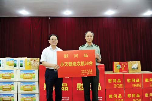 7月27日,以市人大常委會主任賈雪峰為團長的慰問團先后到忻州軍分區(qū)、駐代縣某部和駐定襄某部,對部隊官兵進行了慰問,為他們送去節(jié)日的問候與祝福,并送上慰問品。市領(lǐng)導魏廣才、邊升陽一同慰問。