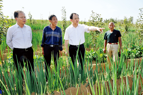 高城鄉(xiāng)高城村多年種植商品辣椒,輻射帶動全區(qū)商品椒種植達10萬余畝。當前正是辣椒收儲加工的高峰期,李俊明實地察看辣椒產(chǎn)業(yè)園區(qū)內(nèi)的收儲加工情況,了解育苗大棚經(jīng)營收入,詢問送售辣椒農(nóng)民的種植收益,詳細了解帶動貧困群眾增收情況。李俊明指出,要持續(xù)深入打造辣椒生產(chǎn)全產(chǎn)業(yè)鏈條,通過規(guī)模化、品牌化、標準化以及線上線下同步發(fā)展,建立產(chǎn)業(yè)發(fā)展與貧困群眾的利益聯(lián)結(jié)機制,積極吸引周邊鄉(xiāng)村貧困群眾參與勞務,帶動貧困群眾脫貧增收。董村鎮(zhèn)在傳統(tǒng)種植項目基礎(chǔ)上,由各村黨支部書記帶頭種植無公害紅薯、菌肥茄子、高油花生、大蔥、大蒜、板藍根等示范田,引導農(nóng)民調(diào)整種植結(jié)構(gòu)。李俊明實地察看了連片種植的百余畝高油花生種植田,詳細詢問實際產(chǎn)出比。他說,農(nóng)業(yè)供給側(cè)結(jié)構(gòu)性改革既要發(fā)揮好市場的調(diào)節(jié)作用,也要發(fā)揮政府的引導作用。要學習忻府區(qū)支部書記示范田的有益創(chuàng)新,通過支部書記、村主任等村干部帶頭,讓農(nóng)民在看得見的收益引導下自覺調(diào)整種植結(jié)構(gòu),把“三基”建設(shè)的成果最終體現(xiàn)到帶動農(nóng)民脫貧增收上。