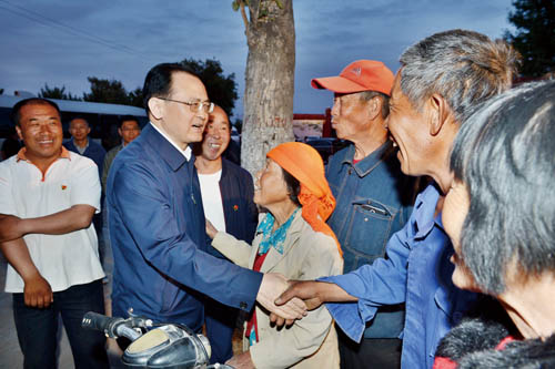 圖為省人大常委會(huì)副主任、市委書(shū)記李俊明在偏關(guān)縣高家上石會(huì)村駐村時(shí)和街頭群眾共話脫貧增收大計(jì)。(本報(bào)記者 宮愛(ài)文 攝)