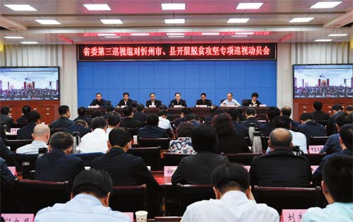 圖為省委第三巡視組對忻州市、縣開展脫貧攻堅(jiān)專項(xiàng)巡視動(dòng)員會(huì)會(huì)場。本報(bào)記者 劉紀(jì)森 攝