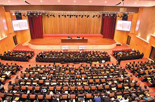 圖為我市學(xué)習(xí)貫徹黨的十九屆四中全會精神省委宣講團報告會會場。本報記者 劉紀(jì)森 攝