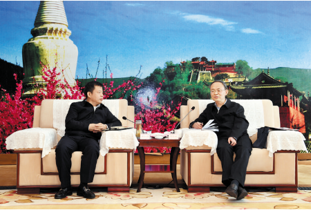 市委書記鄭連生會(huì)見山西文旅集團(tuán)董事長王文保。 本報(bào)記者 劉紀(jì)森 攝