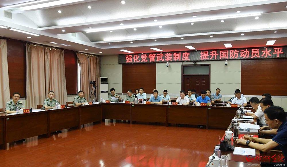 曲君傳達(dá)省委議軍會(huì)議精神,匯報(bào)國防動(dòng)員和后備力量建設(shè)情況。劉紀(jì)森 攝