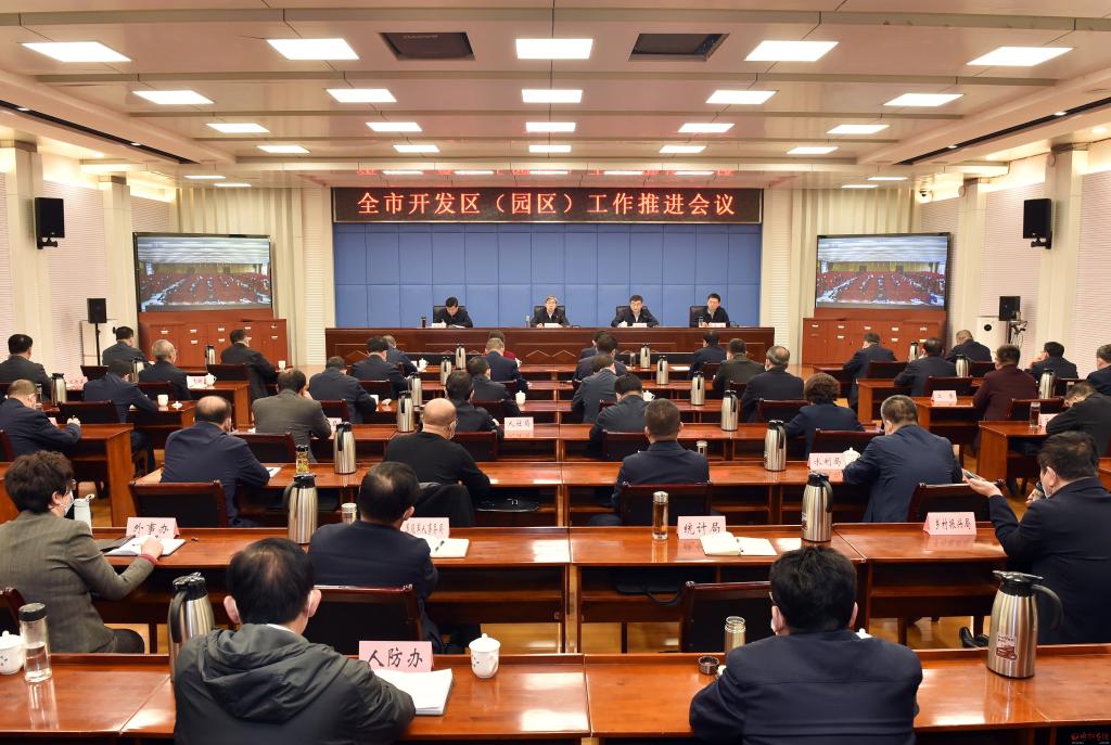 溫建軍總結(jié)全市開(kāi)發(fā)區(qū)(園區(qū))2021年工作,安排部署2022年重點(diǎn)工作。馮曉磊 攝
