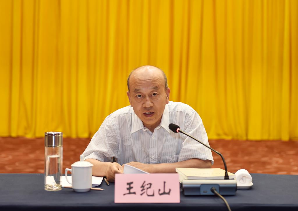王紀山作學習點評。馮曉磊 攝 朱曉東指出,要深學細悟,切實把思想和行動統(tǒng)一到習近平總書記重要講話精神上來。習近平總書記的重要講話,科學分析了當前國際國內(nèi)形勢,深刻闡述了過去5年工作和新時代10年的偉大變革,深刻闡釋了新時代堅持和發(fā)展中國特色社會主義的重大理論和實踐問題,深刻闡釋了未來一個時期黨和國家事業(yè)發(fā)展的大政方針和行動綱領(lǐng),宣示了黨在新征程上舉什么旗、走什么路、以什么樣的精神狀態(tài)、朝著什么樣的目標繼續(xù)前進。講話進一步豐富和發(fā)展了習近平新時代中國特色社會主義思想,通篇閃耀著馬克思主義的真理光輝,為開好黨的二十大把向定調(diào)奠定了重要的思想基礎(chǔ)、政治基礎(chǔ)和理論基礎(chǔ)。全市各級領(lǐng)導干部和廣大黨員要深刻理解、準確領(lǐng)會講話的重大意義、豐富內(nèi)涵、核心要義、實踐要求,切實把思想和行動統(tǒng)一到習近平總書記重要講話精神上來。
