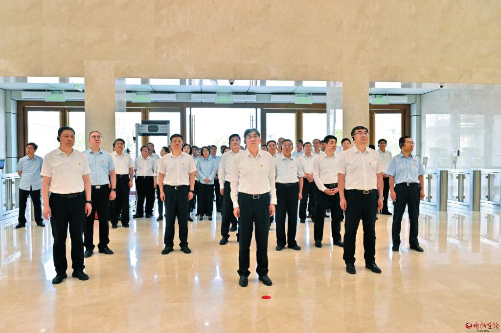 按照全省黨紀學習教育工作安排,7月1日,市委書記朱曉東帶隊赴省黨風廉政教育基地觀看黨紀學習教育專題展覽接受警示教育,經(jīng)受了一次深刻的黨性教育和紀律警醒。李建國、劉卓良、王珍、范建民、王琳玉、溫建軍、張敏、王建江、張宇光等市四大班子領導參加。