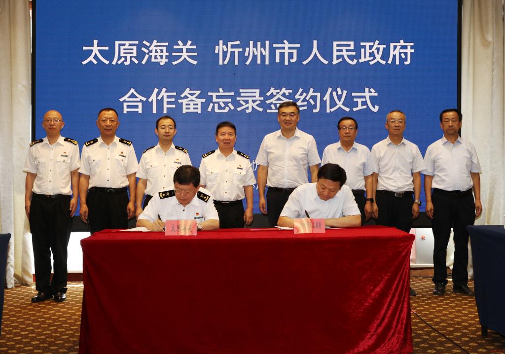 8月6日,忻州市人民政府與太原海關(guān)合作備忘錄簽約儀式在忻舉行。市委副書記、市長(zhǎng)李建國(guó),太原海關(guān)黨委書記、關(guān)長(zhǎng)江林分別致辭;市政府黨組成員孟宏斌、太原海關(guān)副關(guān)長(zhǎng)廉慧鋒代表雙方簽約;市政府秘書長(zhǎng)張艮生主持簽約儀式。太原海關(guān)、忻州海關(guān),忻州市商務(wù)、財(cái)政、公安、市場(chǎng)監(jiān)管部門和五臺(tái)山機(jī)場(chǎng)負(fù)責(zé)人等見(jiàn)證簽約。