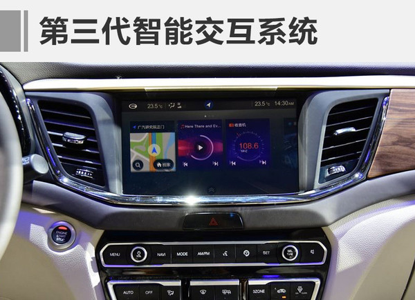 內(nèi)部配置方面,傳祺GS8將搭載品牌最新的第三代智能交互系統(tǒng)。這套系統(tǒng)配備了全新的智能設備,其中10.1英寸觸摸液晶顯示屏是主要硬件部分。在軟件應用中,包括全新的組合儀表盤、智能語音控制、多媒體系統(tǒng)以及應用等一系列人機交互內(nèi)容,這些都能夠與手機端的APP相互連通。
