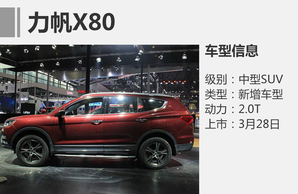 動(dòng)力方面,力帆X80全系搭載2.0T直噴發(fā)動(dòng)機(jī),最大輸出功率141千瓦,峰值扭矩286牛米,傳動(dòng)系統(tǒng)匹配6速手動(dòng)或6速手自一體變速箱。在懸架部分,這款車(chē)采用前麥弗遜/后雙連桿式獨(dú)立懸架。