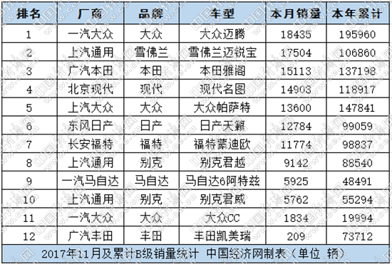 11月,合資B級(jí)車市場(chǎng)中,共有7款車型銷量過萬,除了上面提到的邁騰、帕薩特和雅閣之外,還有天籟、蒙迪歐、名圖和邁銳寶?;仡^來看,合資B級(jí)車市場(chǎng)在下半年走出一股“上揚(yáng)波浪”,最近3個(gè)月,保持了6款以上車型銷量過萬的成績,這一現(xiàn)象在往年很難看到。