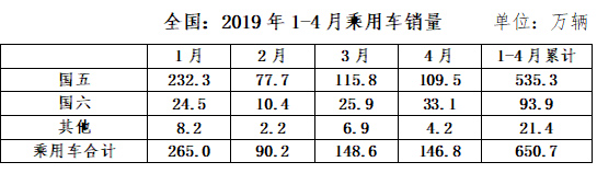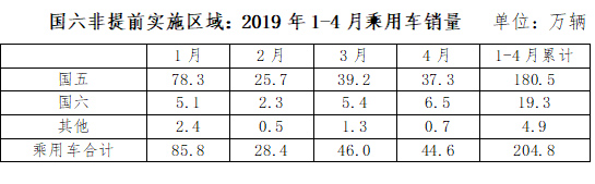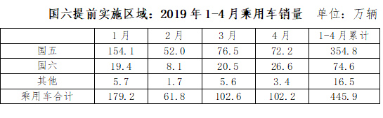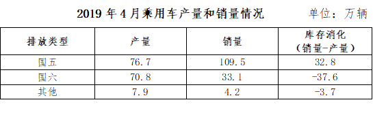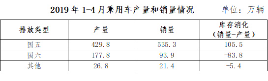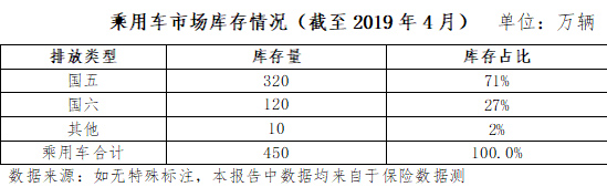 中汽協(xié)發(fā)布的數(shù)據(jù)顯示, 截至2019年4月份,我國乘用車庫銷比達(dá)3.1,遠(yuǎn)高于行業(yè)1.5的警戒線;行業(yè)整體庫存約450萬輛,國五車輛庫存320萬輛左右(占行業(yè)庫存的71%),其中國六提前實施區(qū)域的國五車輛庫存175-220萬輛(調(diào)研企業(yè)推算得出)。