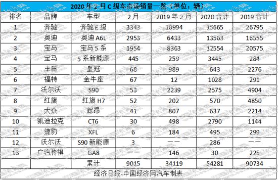 受疫情影響,國內(nèi)汽車產(chǎn)銷在2月基本處于停擺狀態(tài)。聚焦國產(chǎn)C級車市場,幾乎全部車型的銷量都出現(xiàn)暴跌,有的甚至沒有出現(xiàn)在行業(yè)的銷量統(tǒng)計(jì)表上。經(jīng)濟(jì)日報(bào)-中國經(jīng)濟(jì)網(wǎng)記者梳理后發(fā)現(xiàn),共有來自10個(gè)品牌的12款車型公布了銷量數(shù)據(jù):2月,國產(chǎn)C級車的累計(jì)銷量為9015輛,環(huán)比下滑80.08%,與去年同期相比下降73.58%;今年前2個(gè)月的累計(jì)銷量為54281輛,同比下滑40.18%。