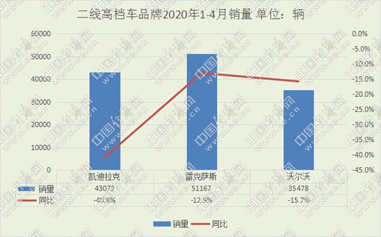 4月,二線高檔車市場(chǎng)呈現(xiàn)加速回升之勢(shì),凱迪拉克、雷克薩斯、沃爾沃均實(shí)現(xiàn)同比正增長(zhǎng),為二季度發(fā)展奠定良好開局。從前4月來(lái)看,雷克薩斯率先突破5萬(wàn)輛,并將其與凱迪拉克的銷量差距拉大至8000余輛。