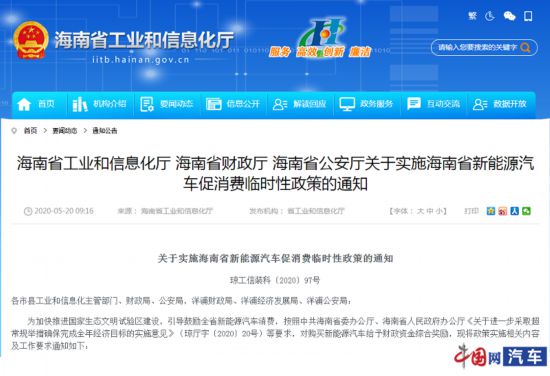 5月21日訊 記者日前從海南省工業(yè)和信息化廳網(wǎng)站獲悉,海南省工業(yè)和信息化廳、海南省財(cái)政廳、海南省公安廳發(fā)布了《關(guān)于實(shí)施海南省新能源汽車(chē)促消費(fèi)臨時(shí)性政策的通知》。