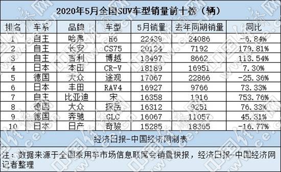具體來(lái)看,5月,共有4款自主車(chē)型入榜銷(xiāo)量前十,“自主三強(qiáng)”哈弗H6、長(zhǎng)安CS75和吉利博越依然包攬前三甲。