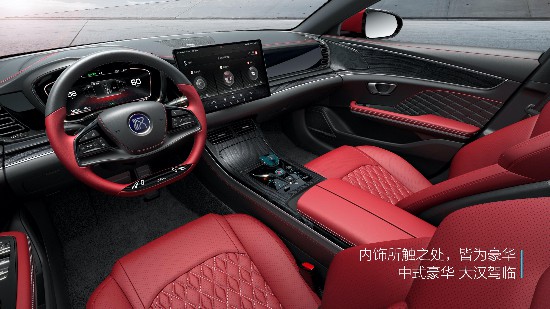 漢整體基于Dragon Face設(shè)計(jì)語(yǔ)言打造,外觀造型采用雙龍并型·性能美學(xué)設(shè)計(jì)語(yǔ)言,內(nèi)飾采用環(huán)抱式品格設(shè)計(jì)語(yǔ)言。內(nèi)飾設(shè)計(jì),左右對(duì)稱的品字形布局營(yíng)造出和諧大方的中式豪華內(nèi)涵。內(nèi)飾材質(zhì)工藝、色彩紋理把握有度,Nappa真皮、天然真木、真鋁等高級(jí)材質(zhì)恰到好處的使用。