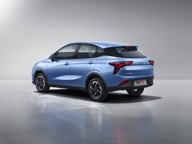 在外觀設計上,哪吒V整車外觀采用海豚流線低風阻造型,下壓式的車頭設計、封閉式的前格柵,配合幾何波紋狀的下進氣格柵。哪吒V車長4070mm,寬1690mm,高1540mm, 軸距2420mm。