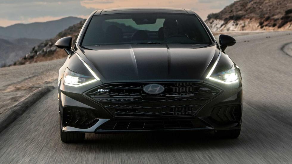 外觀方面,索納塔N Line采用官方稱之為“Sensuous Sportiness感性運動設計理念”,該設計源自Le Fil Rouge概念車。前臉部分,寬大的格柵向兩側延伸且引擎蓋日間行車燈也使得新車前臉擁有較高的辨識度。值得一提的是,新車對格柵、車標,以及前唇進行熏黑處理,視覺感受更加凌厲。