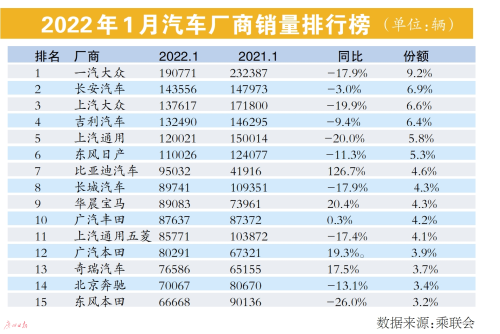 近日,乘聯(lián)會(huì)公布了2022年1月全國(guó)乘用車市場(chǎng)分析。整體來看,1月,國(guó)內(nèi)狹義乘用車銷量為209.2萬(wàn)輛,同比下降4.4%,環(huán)比小幅下滑0.6%。乘聯(lián)會(huì)指出,1月廠商庫(kù)存下降11萬(wàn)輛,渠道庫(kù)存環(huán)比下降9萬(wàn)輛;歷年的1月是去庫(kù)存的重要節(jié)點(diǎn),今年1月庫(kù)存去除較好。