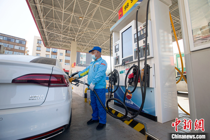 10月24日,山西太原,加油站工作人員正在給車輛加油。 中新社記者 張云 攝