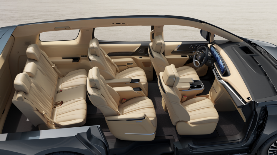值得一提的是,七座臻享款第二排憑借電動(dòng)橫滑設(shè)計(jì),讓兩個(gè)座椅可以獨(dú)立橫向移動(dòng),既能靠攏后讓乘客交流親密無(wú)間,也可向兩側(cè)分開(kāi)形成190mm中央寬敞通道,讓進(jìn)出第三排更為便捷。根據(jù)用戶高頻出行場(chǎng)景,七座臻享款提供7項(xiàng)一鍵奢享座椅聯(lián)動(dòng)模式,包括三排便捷上/下車、后備箱延伸、休憩、舒適、近享、入眠模式,通過(guò)前排中控屏、頂襯旋鈕或二排扶手屏控制,讓用車生活更愜意舒心。新車后備箱標(biāo)準(zhǔn)容積為604升,能輕松放置4個(gè)28吋行李箱;當(dāng)?shù)谌抛巫畲蠡耙?,則可形成縱深1112mm、容積1901升的超大空間,適配更多用車場(chǎng)景需求。