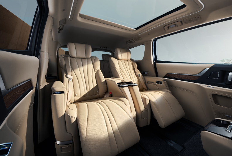 別克世紀(jì)CENTURY七座臻享款采用“2+2+3”座椅布局,搭載創(chuàng)新的二三排共用縱向電動(dòng)長(zhǎng)滑軌設(shè)計(jì),可以讓二/三排座椅分別實(shí)現(xiàn)超長(zhǎng)行程的電動(dòng)前后移動(dòng)。其第二排配備高級(jí)打孔真皮航空座椅,支持14向全電動(dòng)調(diào)節(jié)、椅背最大可調(diào)節(jié)至171度、3檔加熱/通風(fēng)/位置記憶、10點(diǎn)式按摩功能,并囊括一體展開(kāi)式電動(dòng)腿托和電動(dòng)無(wú)級(jí)調(diào)節(jié)腳踏、翻折小桌板、無(wú)線充電手機(jī)槽,內(nèi)側(cè)扶手集成的滑動(dòng)式6吋智能觸控屏還可對(duì)座椅、車窗、后排天窗遮陽(yáng)簾、空調(diào)進(jìn)行控制。第三排劇院式座椅寬綽舒適,可供3位成年人從容乘坐,下翻式中央扶手可4/6分單獨(dú)調(diào)節(jié)、椅背最大傾斜角度達(dá)132度、且座墊支持電動(dòng)翻折。當(dāng)座墊折起時(shí),第三排可進(jìn)行前后720mm超長(zhǎng)行程電動(dòng)滑動(dòng),實(shí)現(xiàn)靈活高效的空間利用。