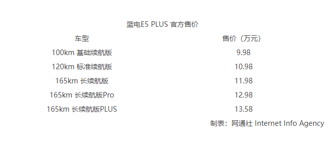 10月17日,藍(lán)電E5PLUS正式上市,新車共推出5款車型,售價區(qū)間為9.98萬-13.58萬元。新車定位中型插混SUV,并采用7座、5座兩種座椅布局可選,滿足家庭出行多場景需求。此外,新車入門車型純電續(xù)航達(dá)到了100km,以及165km同級最長純電續(xù)航和1300km綜合續(xù)航。