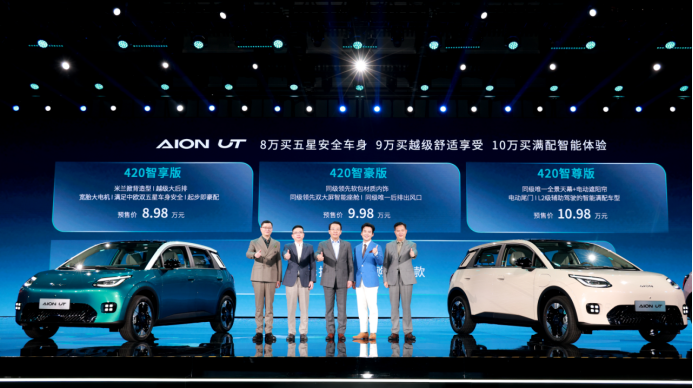 央廣網(wǎng)北京1月15日消息(記者 姜鵬)1月6日,埃安UT鸚鵡龍正式開啟預(yù)售,新車共推出420智享版、420智豪版、420智尊版3個(gè)版本,預(yù)售價(jià)8.98萬元-10.98萬元。