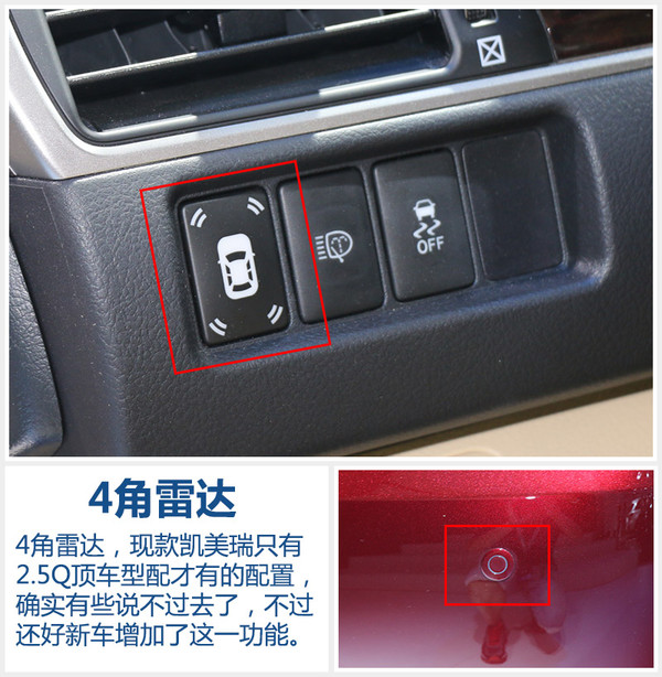 可以說新車最大的一個(gè)升級(jí)亮點(diǎn),就是增加了豐田的Smart Stop智能節(jié)油啟停系統(tǒng)。省油原本就是凱美瑞的一大特質(zhì),好比筆者的7代2.5L車型目前在平均油耗僅為9個(gè)油(北京上下班使用)。增加S&S系統(tǒng)之后,凱美瑞的油耗將進(jìn)一步下降。