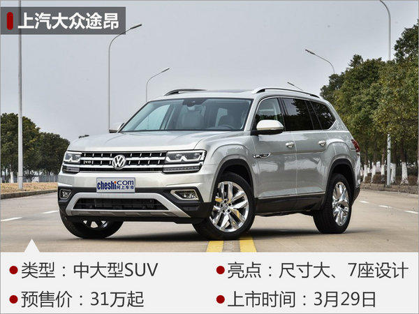 上汽大眾于2016年廣州車展發(fā)布了定位更高的中大型全新SUV-途昂(Teramont),新車將于今年3月29日正式上市。外觀上,新車采用全LED光源前大燈組、“W”型的日間行車燈,并與進(jìn)氣格柵連為一體。內(nèi)飾配置方面,新車擁有1.18平方米全景天窗、自適應(yīng)巡航、駕駛模式選擇、12.3英寸液晶儀表等。大眾為途昂配備了2.0T(高/低功率)和2.5T V6渦輪增壓發(fā)動(dòng)機(jī),其中2.5T發(fā)動(dòng)機(jī)的額定功率可達(dá)220kW,峰值扭矩500Nm,并提供四驅(qū)系統(tǒng)。