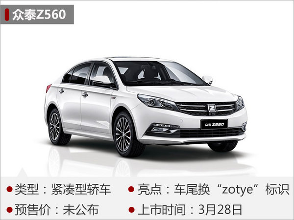 Z500是眾泰汽車旗下一款緊湊型轎車,其改款車型Z560將于3月28日正式上市。外觀方面,新車前臉保留雙橫幅式進(jìn)氣格柵及鷹眼式前大燈組合,視覺效果比較大氣。而新車尾部則取消牌照框上方的Z型LOGO,更換為眾泰最新的“zotye”字樣標(biāo)識(shí)。內(nèi)飾方面,眾泰Z560儀表盤有所升級(jí),增加了帶有行車電腦的中間液晶屏幕。新車將延用1.5T動(dòng)力系統(tǒng),匹配5擋手動(dòng)變速箱或CVT自動(dòng)變速箱。其中,搭配手動(dòng)變速箱車型最大功率將達(dá)105kW,峰值扭矩207Nm。