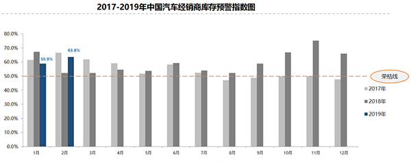 2月,汽車經(jīng)銷商庫存預(yù)警指數(shù)為63.6%,環(huán)比上升4.7個百分點,同比上升11.3個百分點。樊宇表示,2月適逢春節(jié)假期,客流量明顯減少,導(dǎo)致銷量下滑。部分經(jīng)銷商在節(jié)前清庫存,調(diào)整了2月進(jìn)車節(jié)奏,但由于整體汽車市場情況不樂觀,價格競爭嚴(yán)峻,經(jīng)銷商經(jīng)營壓力依然較大。