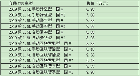 8月3日,一汽奔騰全新物聯(lián)網(wǎng)汽車T33正式上市。一汽轎車股份有限公司總經(jīng)理柳長(zhǎng)慶公布了奔騰T33的官方指導(dǎo)價(jià)。奔騰T33共計(jì)推出12款車型,售價(jià)區(qū)間為6.98-9.98萬元。