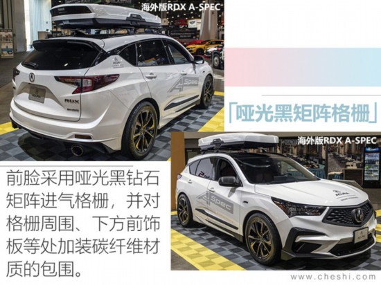 現(xiàn)款謳歌CDX分為燃油版和混動(dòng)版兩種車型,明年謳歌CDX不僅會(huì)迎來改款,并將加入A-Spec的量產(chǎn)版車型,相比于普通版,CDX A-Spec概念版融入A-Spec專屬設(shè)計(jì)元素,原車的鍍鉻裝飾件更換為亮黑色裝飾件,前后包圍以及輪轂則采用了啞光設(shè)計(jì),包括多輻式運(yùn)動(dòng)輪圈、熏黑前大燈等,均增加了視覺沖擊力。而RDX A-SPEC的海外版與國(guó)內(nèi)版本相似,明年的量產(chǎn)版也將成為新款RDX的最大亮點(diǎn),新車前臉依舊采用了啞光黑鉆石矩陣進(jìn)氣格柵,并對(duì)格柵周圍、下方前飾板、門框以及后擴(kuò)散器和后視鏡蓋等多處加裝了碳纖維材質(zhì)的包圍,整體更為激進(jìn)運(yùn)動(dòng),令人過目難忘。
